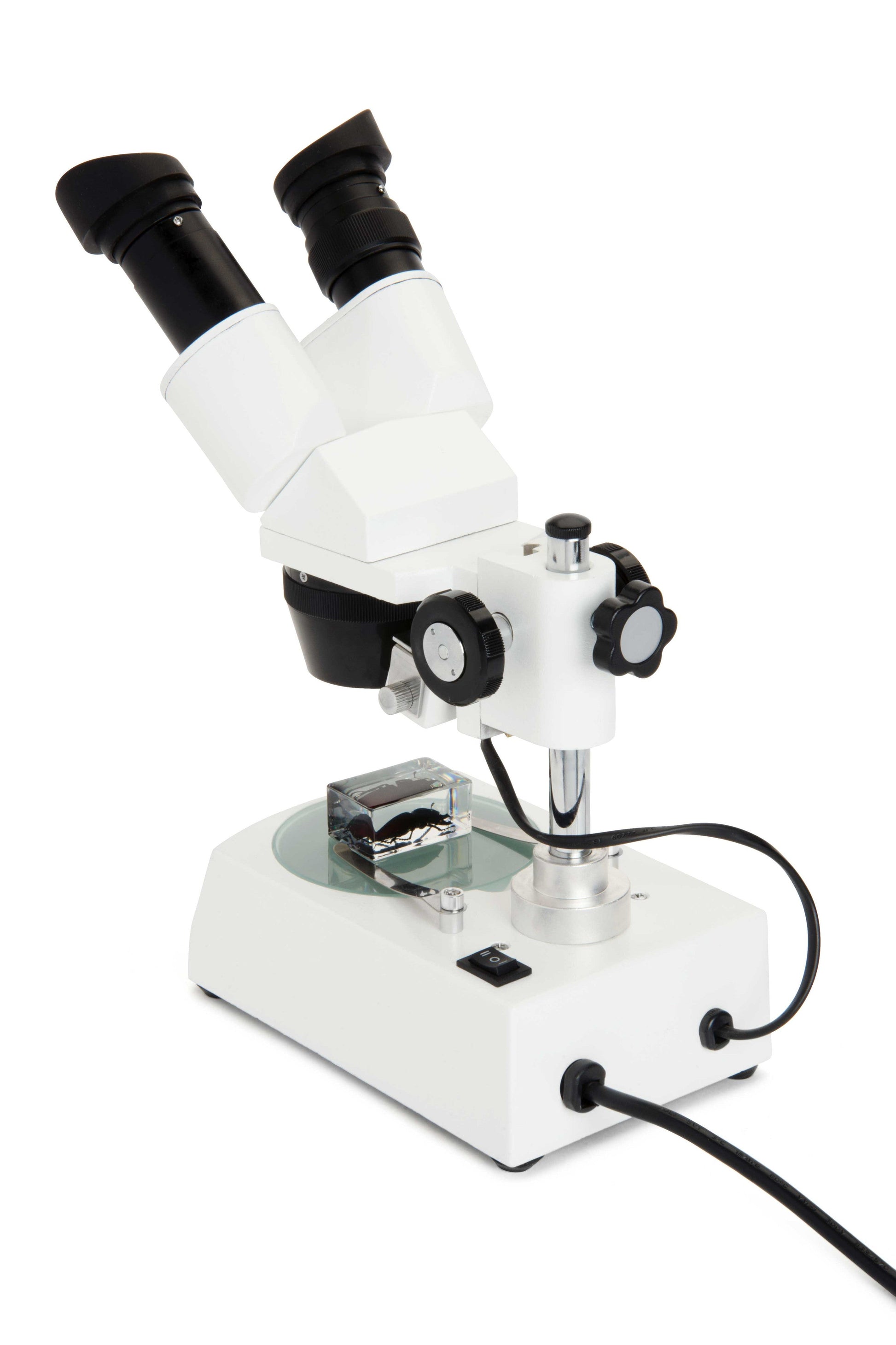 - Two stage plates included: (1) transparent stage for bottom illumination and (1) black and white stage plates for enhanced viewing