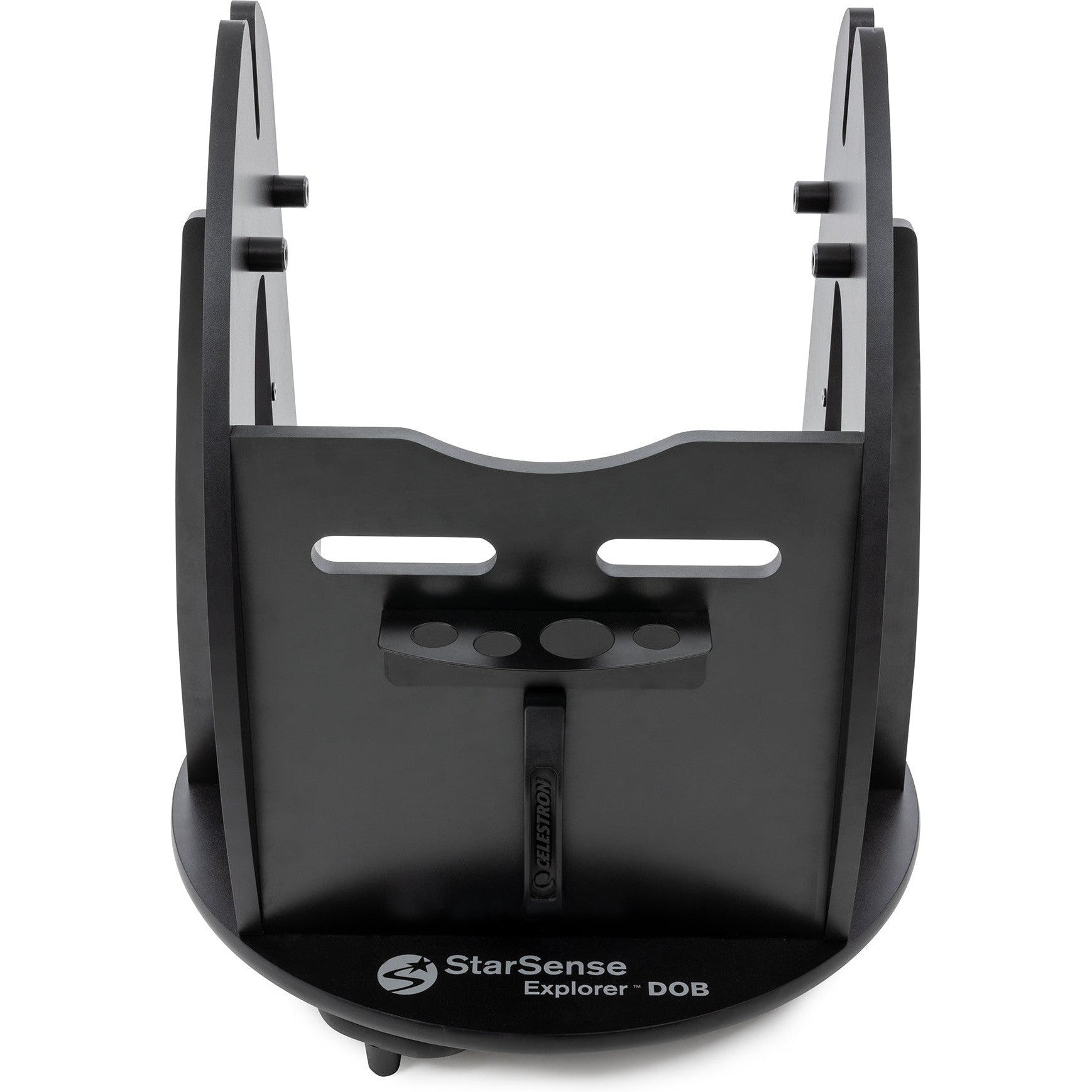 An ultra-stable Dobsonian base provides a sturdy foundation for StarSense Explorer. It features large diameter altitude bearings with variable tensioning, Teflon azimuth bearings, and braces on the side panels for extra stability (unlike many 12” Dobsonian bases). The altitude bearings provide a smooth up-and-down motion while the integrated altitude "brake" system allows you to adjust the tension along the altitude axis for smoothest motion even with slight imbalances. The panning knob on the telescope tube provides an ergonomic grip so you can precisely point the telescope without introducing heat from your hands into the optical system. As celestial objects appear to drift across the night sky, you'll be able to easily follow them with minor adjustments to the telescope’s position.